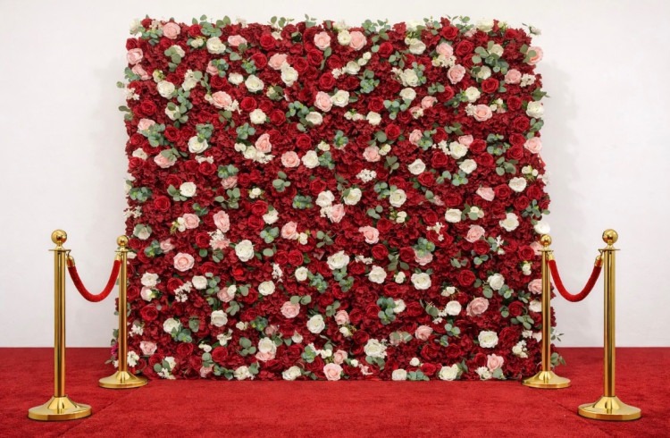 • stanchions and red carpet5D flower wall wedding rental:stanchions and red carpet1